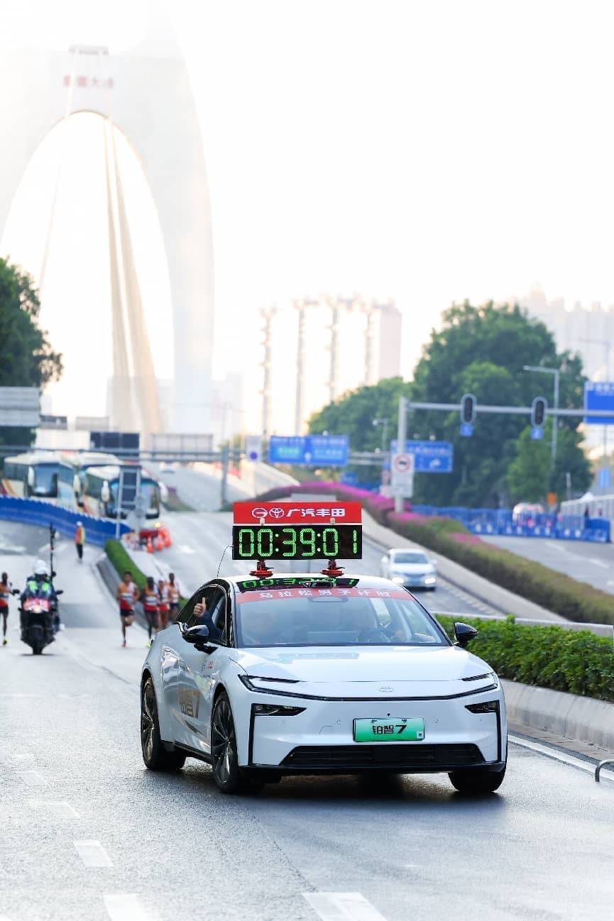 自 2013 年起,廣汽豐田已連續(xù) 11 年攜手廣馬,從最初的混動車型到如今的豪華純電旗艦,品牌與賽事共同見證廣州的城市發(fā)展。鉑智7的到來,既是廣汽豐田“油電同強(qiáng)” 戰(zhàn)略的重要落子,也標(biāo)志著豐田在華純電產(chǎn)品的全面發(fā)力。