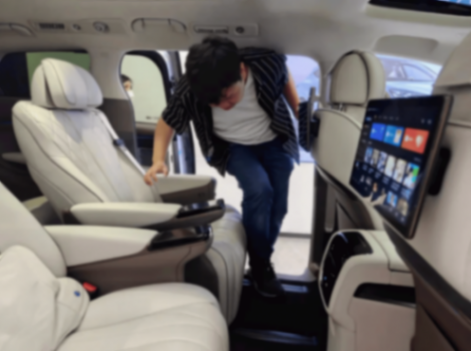 MPV是“平移”進(jìn)去的——拉開(kāi)門(mén),屁股一扭就坐上去了。老人抱孩子、穿一步裙的女士,都比較方便。雙側(cè)電滑門(mén)開(kāi)口巨大,下雨天撐傘上車不濕褲腳。