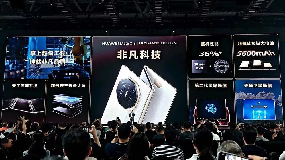 華為Mate XTs非凡大師是華為第二款三折疊,也是全球第二款,2024年9月,華為發布了全球第一臺三折疊。