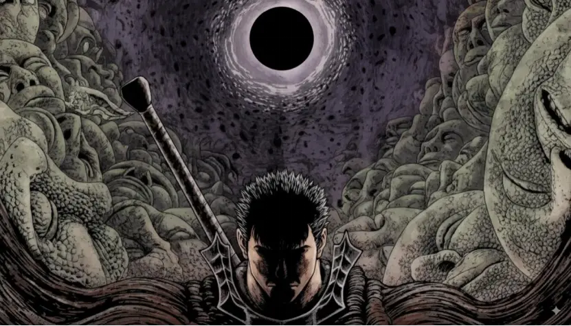 下面這個案例會更復雜些。非常考驗模型的上色能力和對特定藝術風格的理解。不僅僅是填色,好的AI上色需要理解,漫畫作者三浦建太郎原畫中的光影、材質和氛圍,用色彩來增強而非破壞原作的厚重感和力量感。