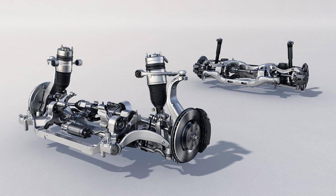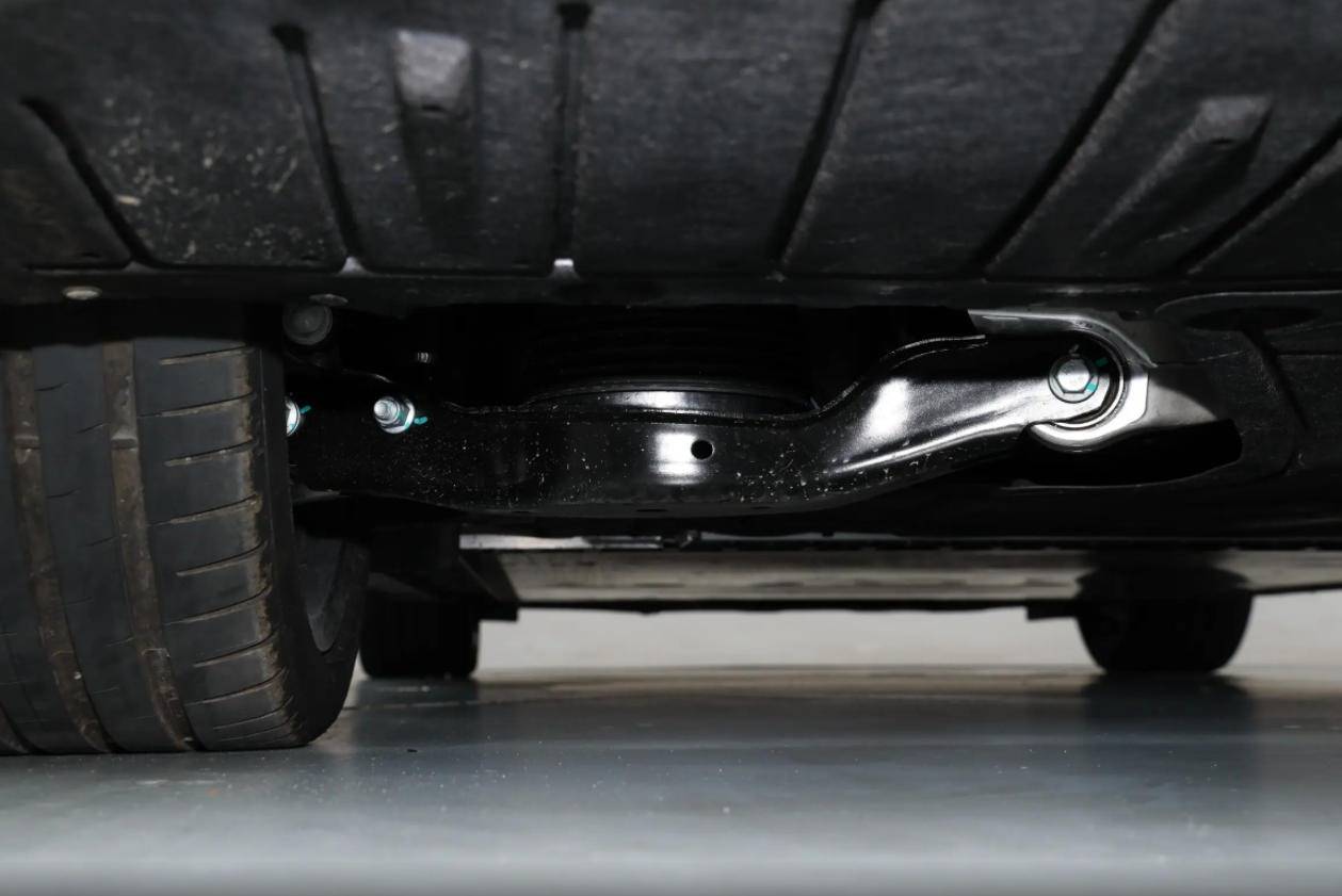E5采用了類似的架構,同樣是雙叉臂配合多連桿,但采用“老家”德國大陸的空氣懸掛,不同之處在于,奧迪更注重操控,不僅在德國進行了測試和校準,還配備了漸進式轉向系統和后輪轉向,讓本來軸距更短的E5開起來更靈活可控,多連桿底盤的調校也一直是奧迪的特色項目。