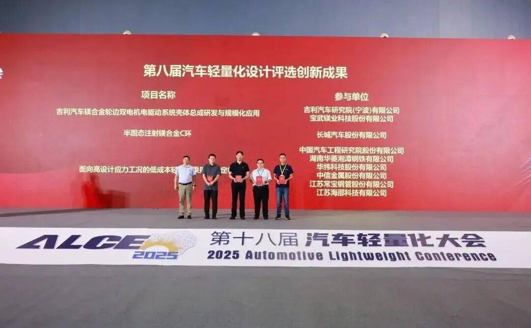 第八屆“汽車輕量化設計大賽”評選共產生“創新成果”、“杰出成果”、“卓越成果”。“創新成果”項目為吉利汽車鎂合金輪邊雙電機電驅動系統殼體總成研發與規模化應用,半固態注射鎂合金C環,面向高設計應力工況的低成本輕量化乘用車穩定桿;“杰出成果”項目為高度集成懸架托臂一體式鑄造橋殼和ESP短流程熱成形鋼;“卓越成果”項目為2200MPa高強韌鋁硅熱成形鋼研制與產業化應用。
