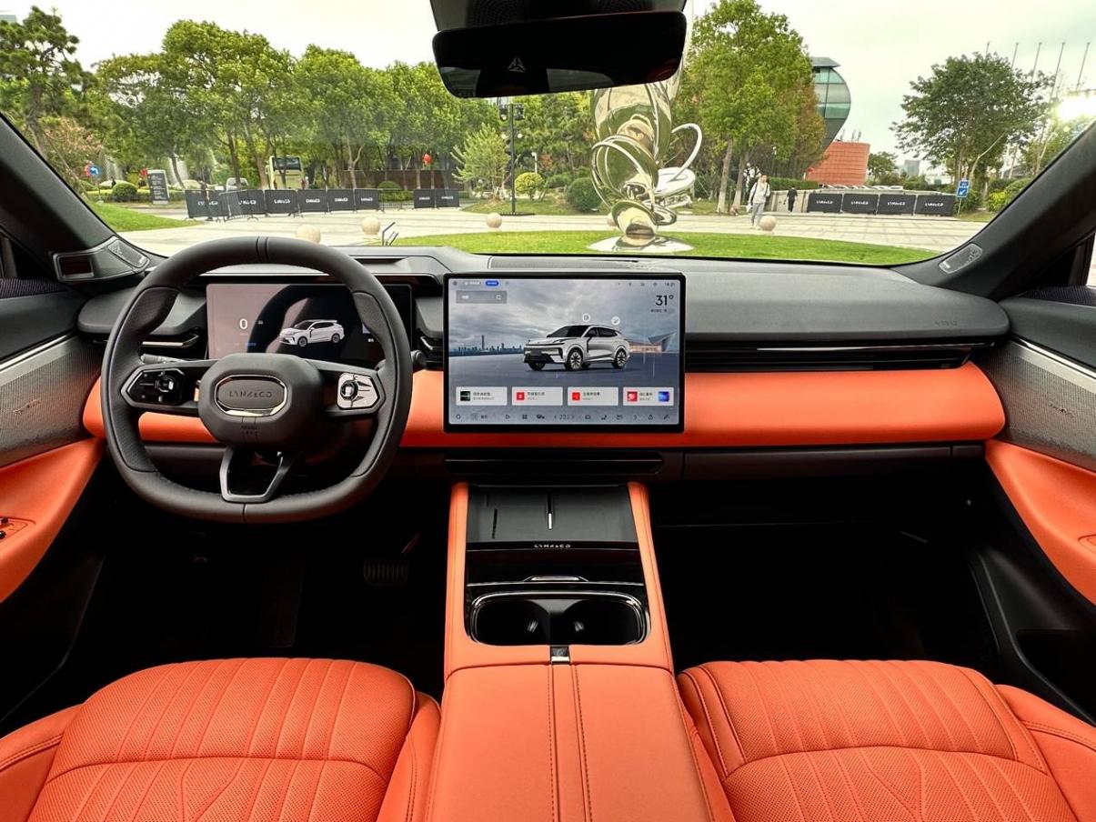 進入車內,極具科技感的中控區域十分吸睛。三輻式方向盤造型運動,搭配可隨駕駛模式切換的12.3英寸全液晶儀表以及95英寸全彩AR-HUD抬頭顯示,兼具科技感以及駕駛樂趣性。15.4英寸中控屏是核心交互區,內置LYNK Flyme Auto 2車機系統,以“好看、好玩、更懂你”為核心,搭載驍龍8295芯片,操作流暢。車機界面采用大卡片布局,多任務小窗切換非常靈活。系統還配備基于感知的SR實景界面,可實時渲染周邊交通參與者與道路設施,即便在惡劣天氣下也能清晰呈現。行泊停一體化界面融合導航、SR、泊車信息,無需頻繁切換界面,獲取信息更便捷。除此之外,新車還對中央T形區進行了調整,此前推拉式的蓋板,在新款車型上改為翻蓋式,同時放置水杯區域從縱向改為橫向。
