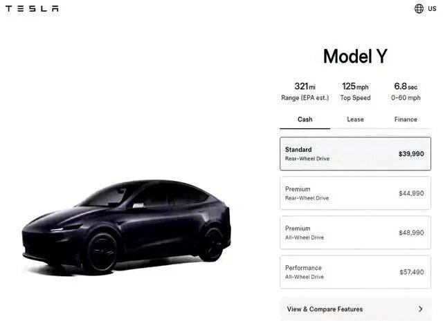 日前,特斯拉在美國推出Model Y和Model 3的標準版車型,其中Model Y價格約合28.47萬元,Model 3價格約合26.34 萬元。