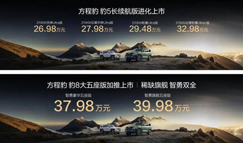 從26.98萬的豹5長續航版到37.98萬的豹8大五座版,方程豹以技術升級、配置煥新拓寬硬派越野邊界。在品牌即將突破20萬臺銷量的節點上,方程豹正以“人人可野”的精神,讓專業越野體驗觸手可及,陪伴用戶解鎖更多曠野出行可能。