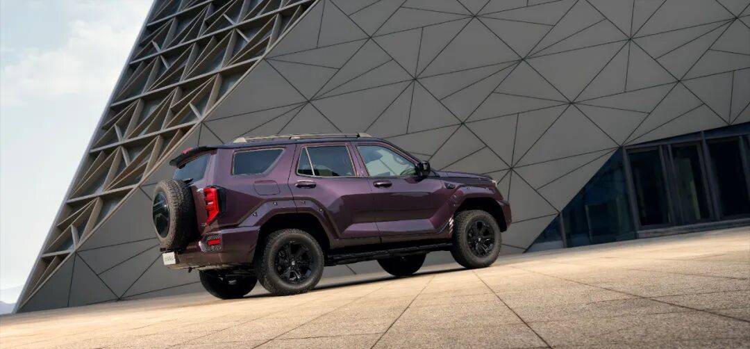 來到車側,新車的輪眉仍采用外露式鉚釘設計,機械門把手和固定腳踏板則給人安心、可靠之感。再看車后,備胎外掛方式有所簡化,后包圍設計亦配合前包圍進行了更新。此外,“能量翼”尾燈讓人過目難忘,新增“小藍燈”則彰顯著該車輔助駕駛能力的進化。