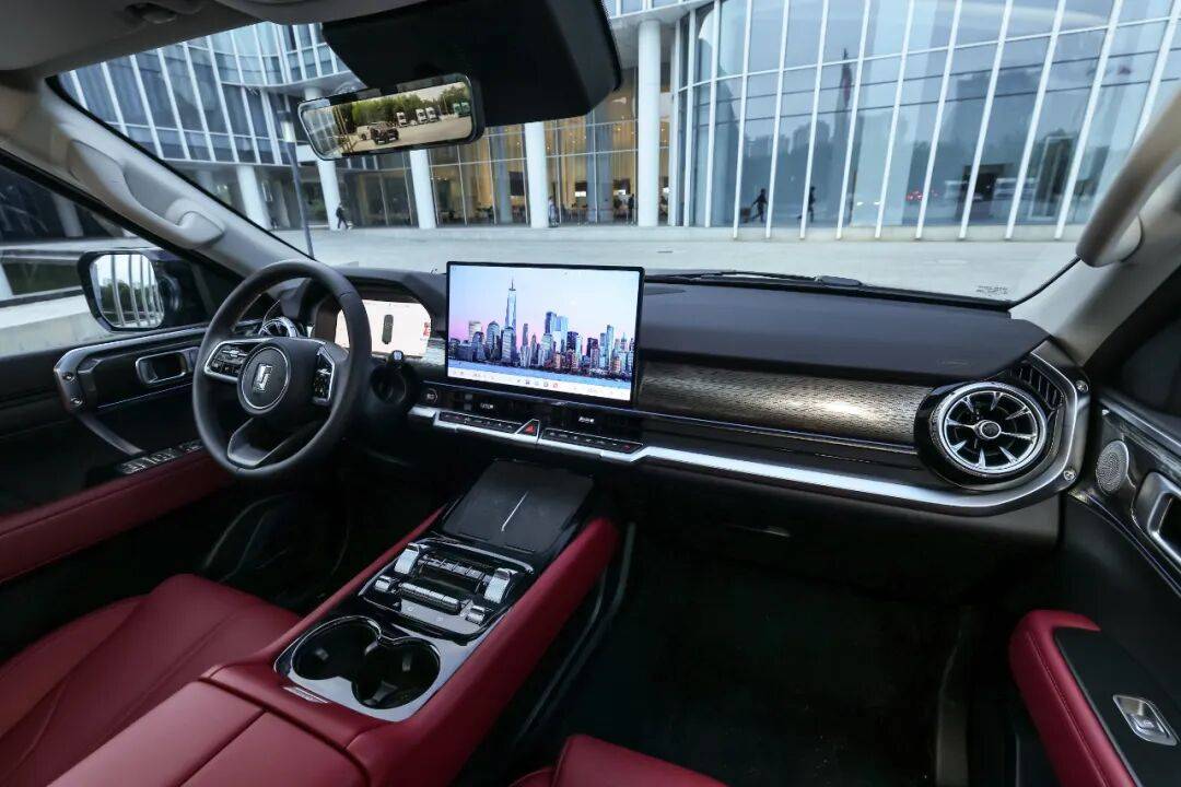 進入車內,全新坦克400在延續之前座艙整體風格的基礎上亦有所變化。雖然懸浮式中控屏由16.2英寸調整為15.6英寸,但其支持2.5K分辨率;同時,新車還改用了懷擋設計,中控臺下方布局由此更為合理、功能更加豐富,雙50W手機無線充電面板尤其值得好評。