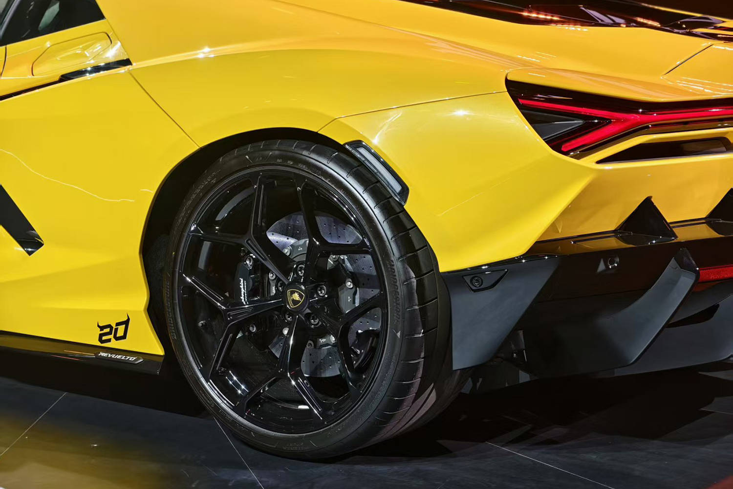 在車側(cè),新車繼續(xù)采用剪刀門設定,同時后部延續(xù)了自Diablo車型傳承而來的翼子板懸浮鋒片。細節(jié)部分,可以看到新車側(cè)裙上方的20字樣以彰顯特殊身份。另外像前20寸、后21英寸輪圈并沒有缺席,同時繼續(xù)采用碳陶剎車系統(tǒng),前10活塞后4活塞搭配410毫米剎車盤的配置堪稱頂級。