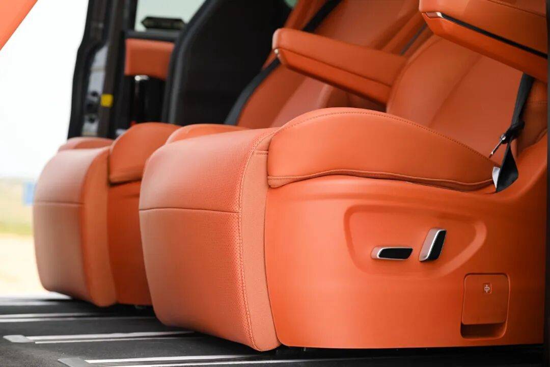 基本在全車每個位置都能得到足夠寬敞的空間,而且它的空間可塑性很強。二排座椅可左右滑移,中央通道最大擴展185mm;三排座椅均可前后移動340mm,增大空間拓展,還可以前移、前翻、4/6比例放倒;行李艙最大空間達1270mm。而且據說它還提供了2+2+2+3九座布局車型,但我沒見到九座實車無法評價。銳勝M8共可以打造出露營模式、大床模式、迎賓模式、舒享模式、就餐模式、辦公模式、移動行李艙七種空間模式。
