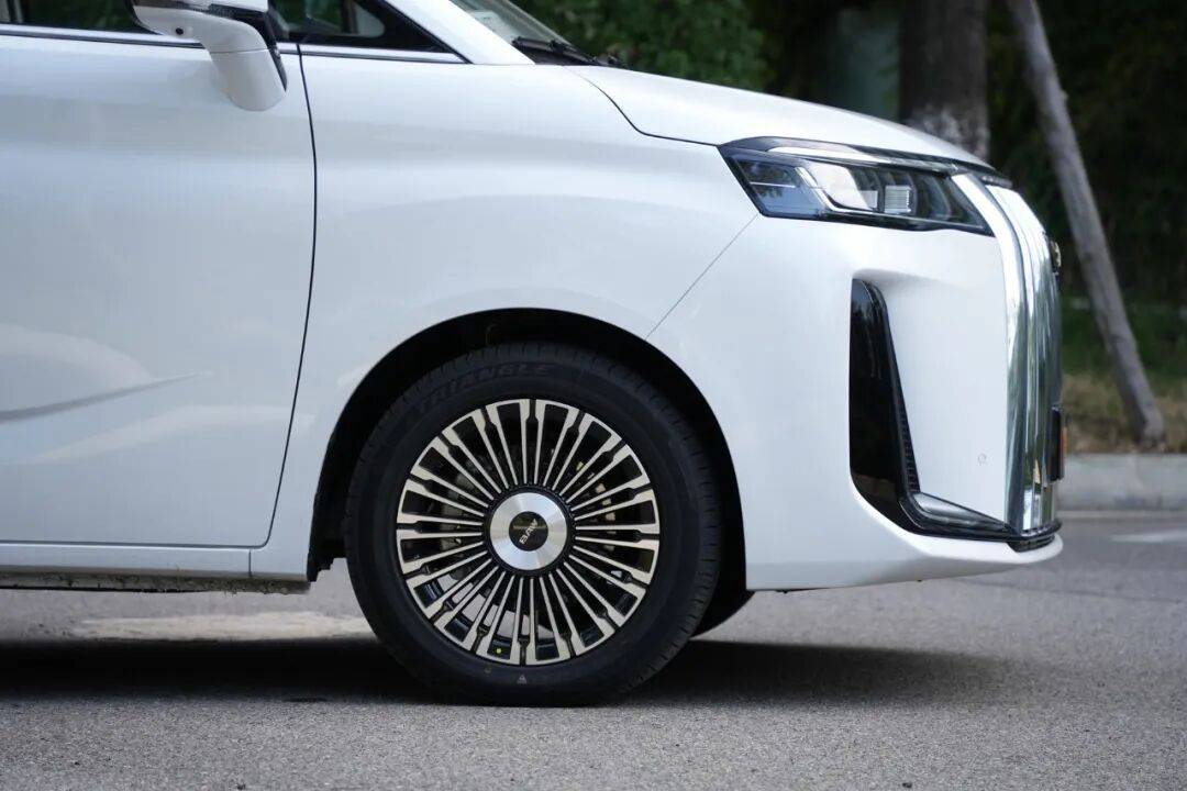 車身側面和尾部的設計非常簡約,沒有太多不倫不類的元素,讓人印象深刻的是多幅輪轂和星河尾燈,尾燈144塊三角形發光單元沿貫穿軌跡逐次鋪陳。銳勝M8除了多種常規配色外還提供了撞色方案,比如上白下藍的車型,顏色搭配的很時尚,比較符合年輕群體的審美。