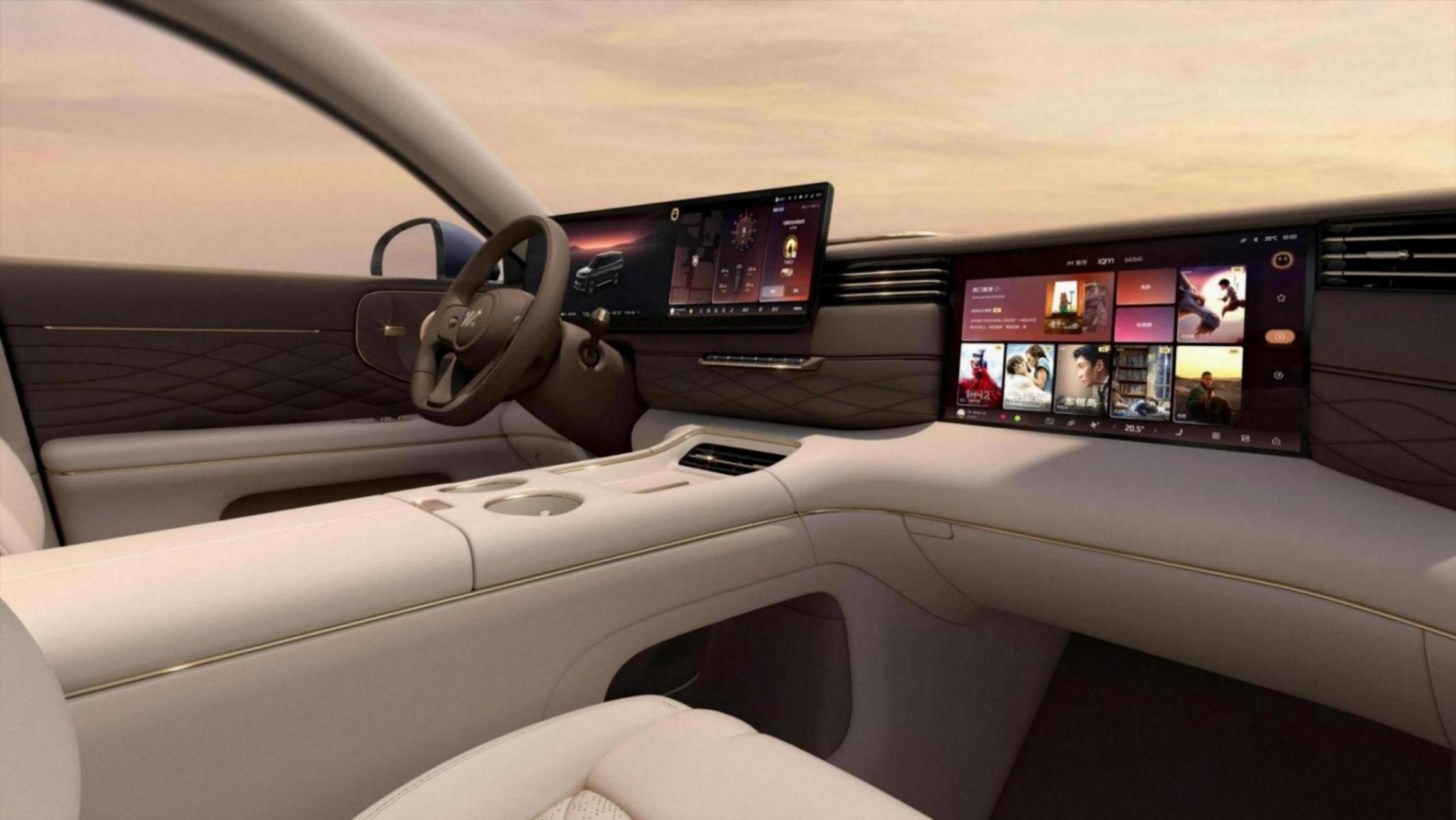 150mm超大行程封閉式雙腔空懸、雙向24度智慧四輪轉向系統、英偉達Thor芯片、520線超視域激光雷達、B&O音響系統、主駕以及二排右座4D機械按摩(四個獨立座椅均帶按摩)、全車三把零重力座椅、一體式超廣域智慧探射燈等等——相當于之前所宣傳的亮點配置,兩款車型均會搭載。