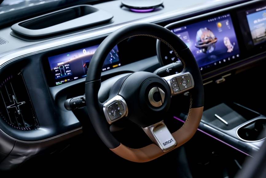 smart #5 EHD的智能座艙不玩噱頭,每一項功能都貼合家用需求。雙13英寸AMOLED聯屏搭配AMD V2000芯片,滑動、點擊零卡頓;加上25.6英寸的AR-HUD,可以實現5屏交互聯動;語音助手支持連續對話與多指令識別,一句“打開空調調到22度,再放首兒歌”就能一次性完成,無需重復喚醒。