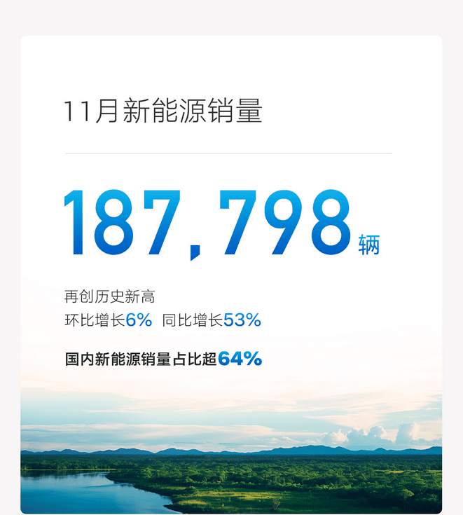 這份成績的背后,是技術研發與戰略布局的厚積薄發。11月新能源銷量187798輛,同比增長53%,滲透率60.5%,遠超行業預計年底才達60%的平均水平。即將發布的全球全域安全中心,砸下20億研發投入還將向行業共享,這種技術開放的底氣,源自神盾電池等核心技術的沉淀。