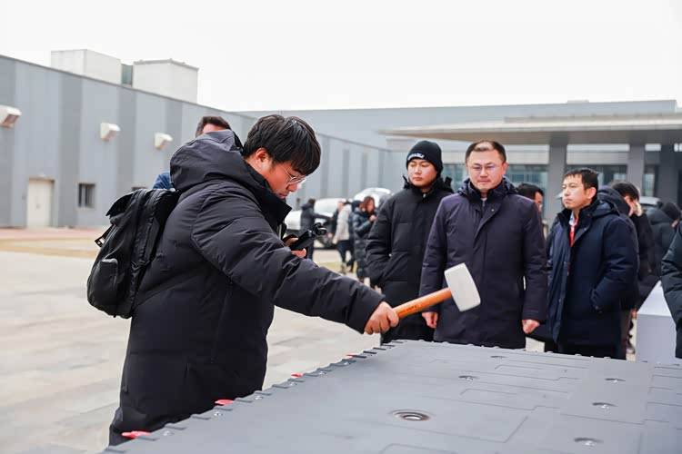 在這里,用戶不再是旁觀者,而是安全實力的“檢驗官”。他們可以親手操作液壓鉗,直觀感受紅旗天工前防撞梁與普通國標產品在強度上的天壤之別;可以近距離審視經過撞擊模擬的9H4M車身結構,看清其如何在沖擊中保持乘員艙的堅固完整;甚至可以現場用力敲擊被稱為“電池鎧甲”的防護系統,親身驗證其“砸不爛、穿不透”的物理防護承諾。