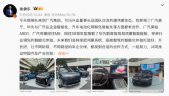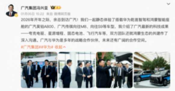 1月5日,廣汽集團與華為終端在廣汽集團番禺總部簽署全面合作框架協議,雙方將圍繞鴻蒙生態共建與AI前沿技術聯合創新展開深度合作,整合各自優勢打造全球競爭力的智能出行解決方案,加速中國汽車產業智能化與國際化進程。