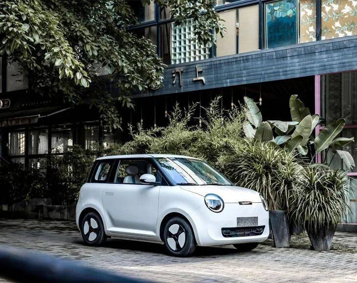 外觀方面,作為一款定位年輕、個(gè)性化的微型電動(dòng)車,其外觀設(shè)計(jì)極具辨識(shí)度。前臉,最具特色的是其圓形大燈組,搭配下方大面積留白的設(shè)計(jì),營(yíng)造出一種簡(jiǎn)約呆萌的視覺效果。側(cè)面,采用懸浮式車頂設(shè)計(jì),即車頂(A柱/C柱以上部分)與車身主體采用不同顏色,形成鮮明的撞色效果,增加時(shí)尚感和活力。車尾,呼應(yīng)前臉,尾燈也多為方正或圓形設(shè)計(jì),造型簡(jiǎn)潔可愛。此外,還提供了超過100種個(gè)性化改裝方案,滿足不同消費(fèi)者的多樣需求。其長(zhǎng)寬高分別為3000/1510/1630 mm,軸距為1953mm,大于宏光MINIEV(2920/1493/1621 mm,軸距為1940mm),后排頭部和腿部空間更優(yōu)。