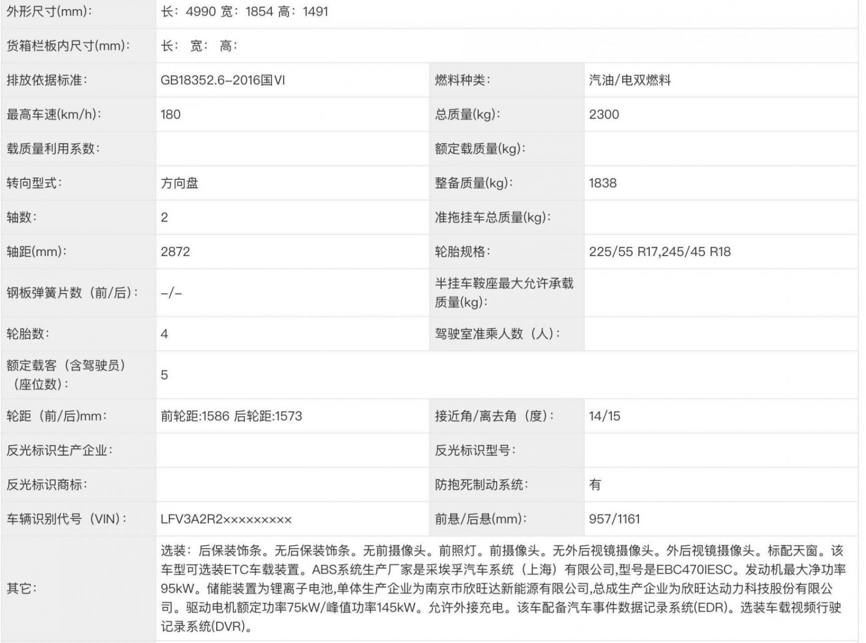 動(dòng)力部分,采用1.5T插混系統(tǒng),發(fā)動(dòng)機(jī)功率95kW,電機(jī)峰值功率145kW,三元鋰電池來(lái)自南京欣旺達(dá)。綜合各方信息,純電巡航可能是120km,綜合續(xù)航參考帕薩特ePro的是1200km。