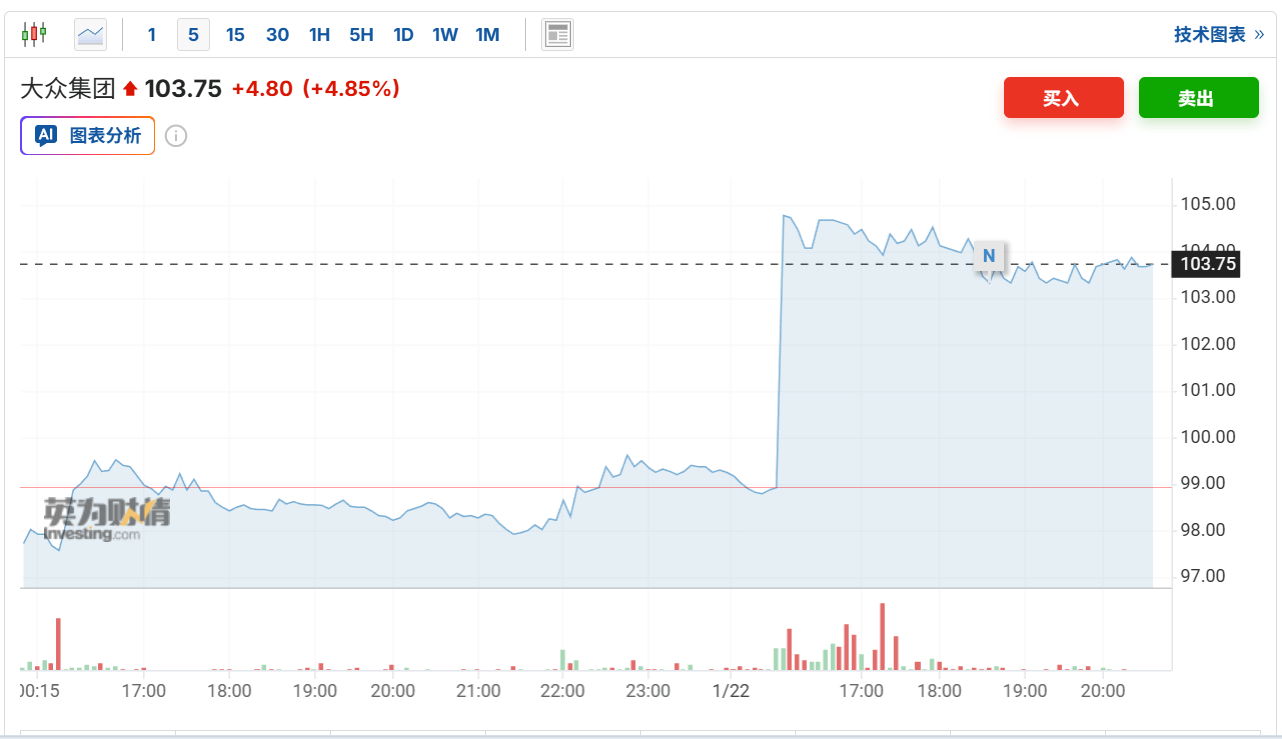 截至發(fā)稿,大眾集團(tuán)股價(jià)已上漲4.8%,有望創(chuàng)下6個(gè)月以來(lái)單日最大漲幅。