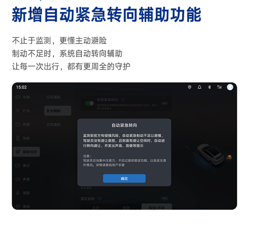 此外,本次OTA還增加了自動緊急轉向輔助功能,可智能識別潛在碰撞風險并主動介入轉向控制,有效降低事故發(fā)生概率。