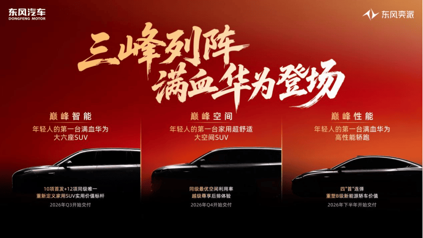 技術最終服務于產品。2026年,東風奕派計劃推出的8款新車中,最具戰略意義的是以“巔峰智能、巔峰空間、巔峰性能”為標簽的三款“滿血華為”戰略車型,均明確瞄準年輕用戶的第一臺車需求。