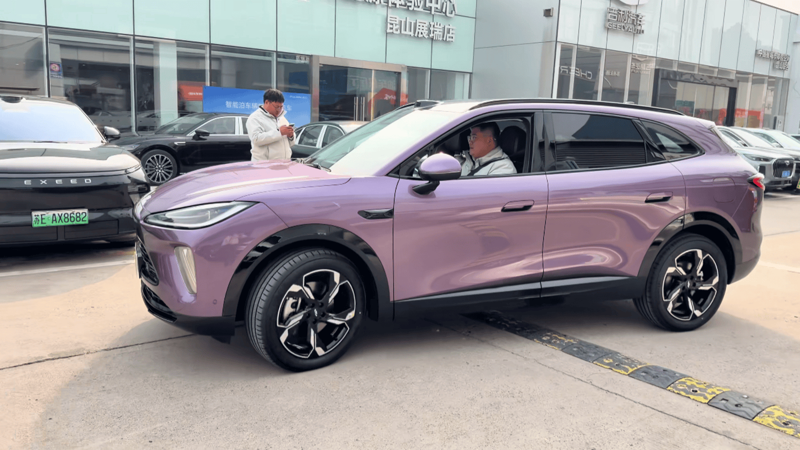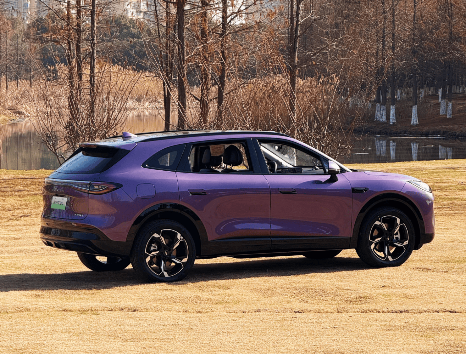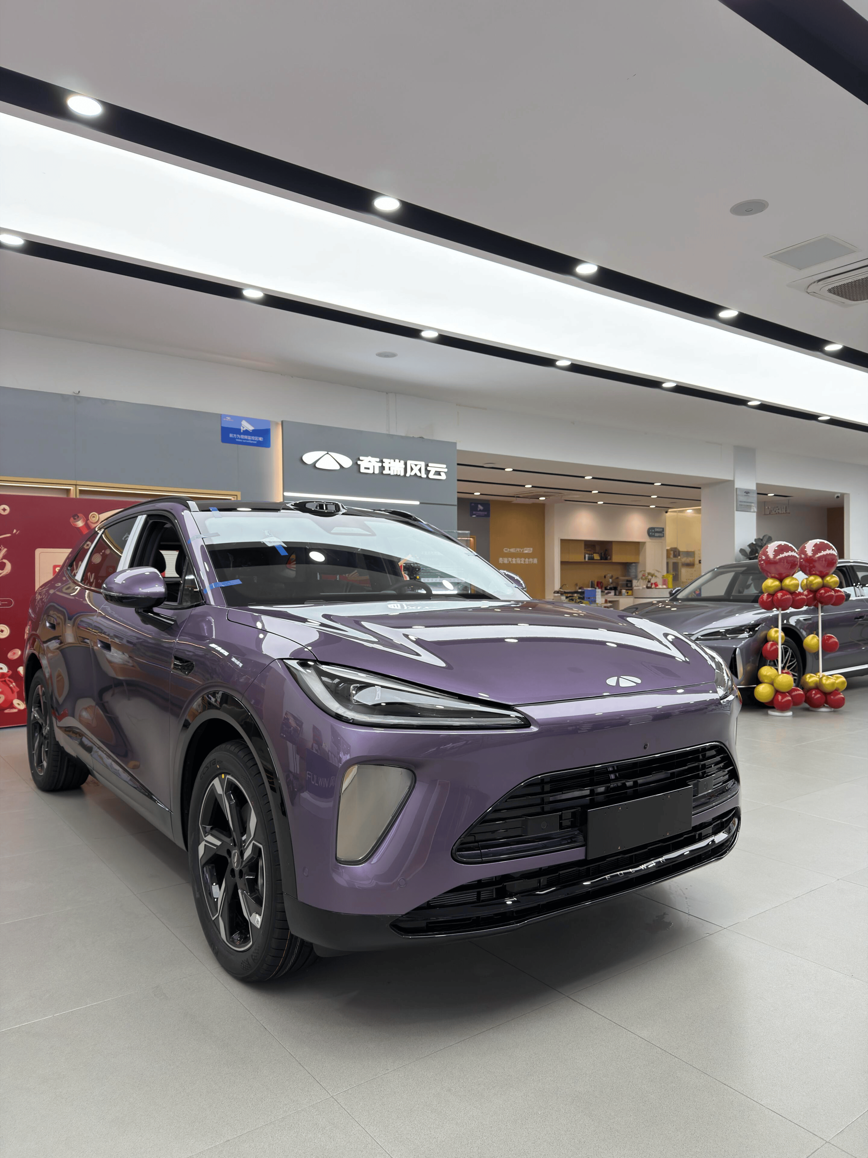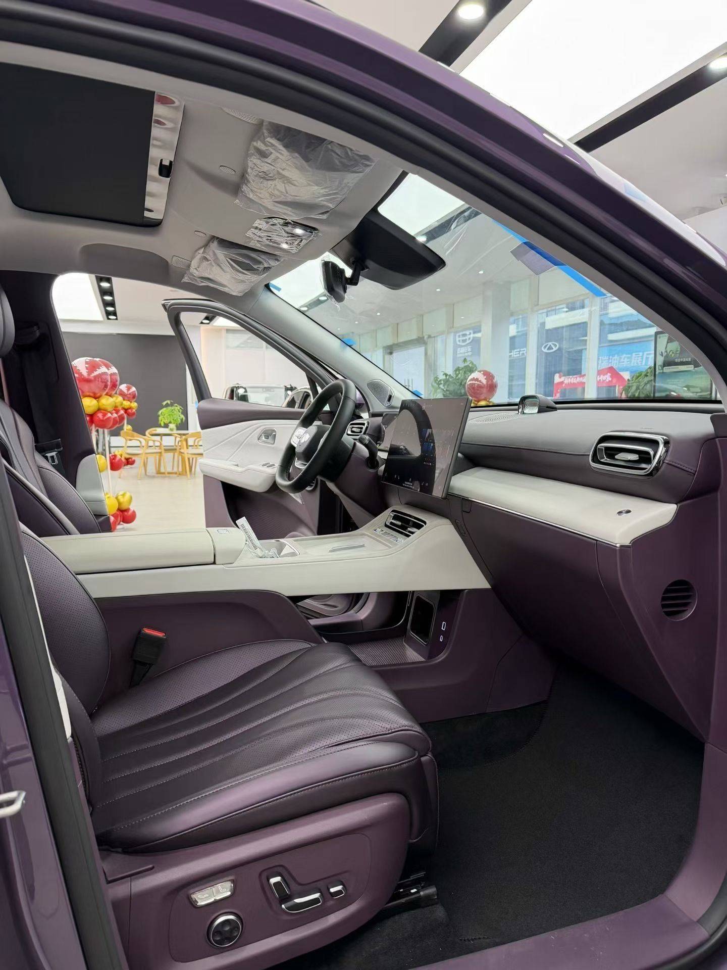 內飾采用簡潔的環抱式雙層中控臺,并配備懸浮式中控大屏和矩形儀表屏,還搭載了3nm 8678芯片加持的Carmind 1.5智艙系統,提供全新小奇+AI智能交互體驗。同時還將配備雙幅式多功能方向盤+電子懷擋,鏤空副儀表臺上有一排鍍鉻物理按鍵、50W手機無線快充等。而紫/白雙色風格配合大量皮質包覆,加之木紋飾板點綴、撫琴立式中置揚聲器、流螢氛圍燈等,又帶來豪華感。