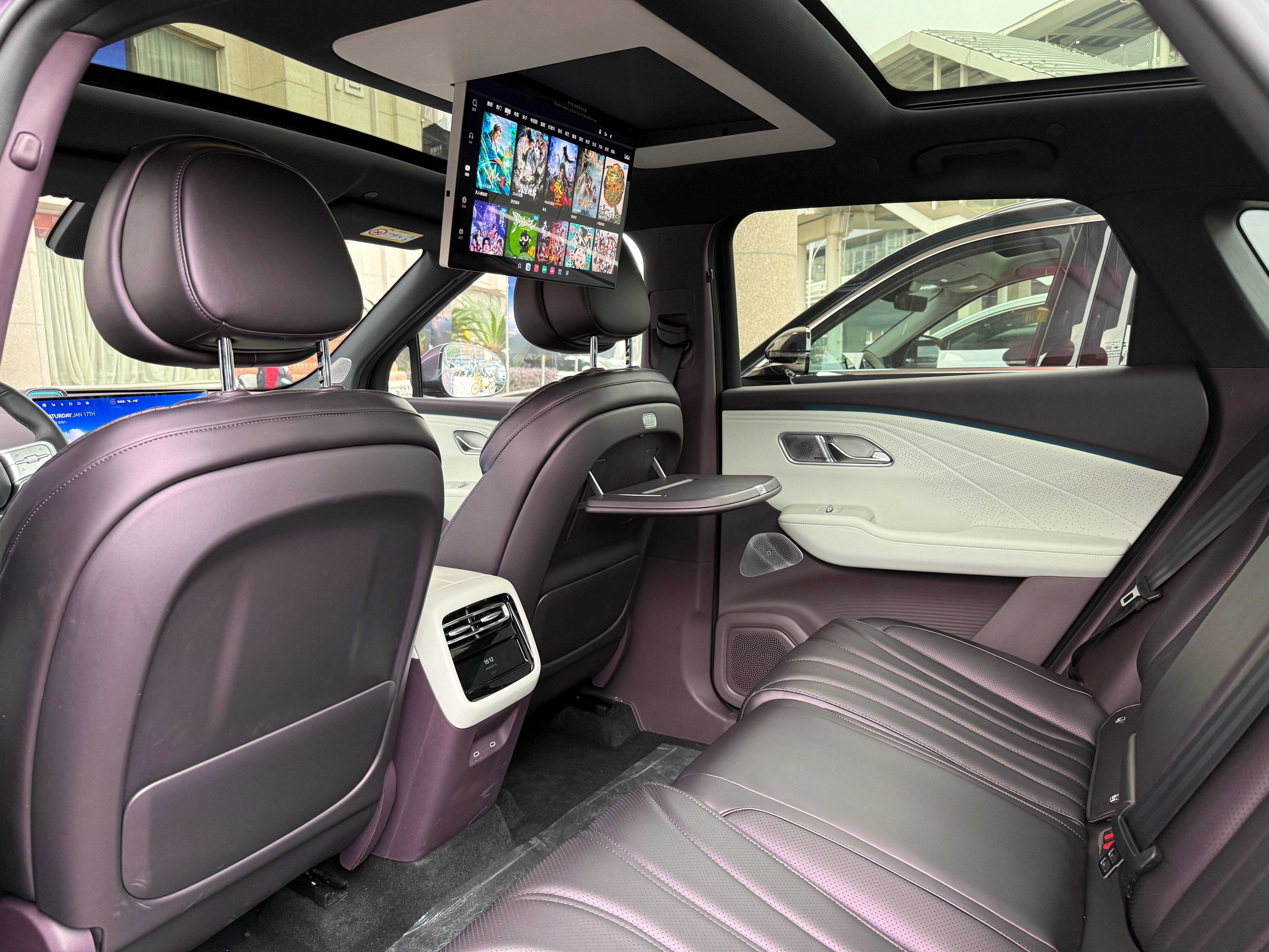 車內采用大五座布局,前排配備雙零重力座椅,支持16向電動調節、電動腿托/腰托、通風/加熱/按摩等功能。而后排座椅也支持35度電動調節、通風/加熱等,可通過觸控屏進行調節,加之17.3英寸2.5K吸頂娛樂屏、折疊小桌板、23揚伯牙之音等,乘坐舒適性不言而喻。同時,前排座椅靠背可放平與后排座椅相連,形成“雙大床”模式,而后排座椅放倒后,也能進一步提升實用空間。