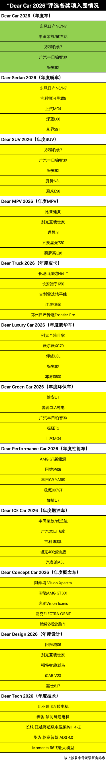 現(xiàn)在就把“Dear Car 2026”各獎項入圍的情況跟大家報告如下。