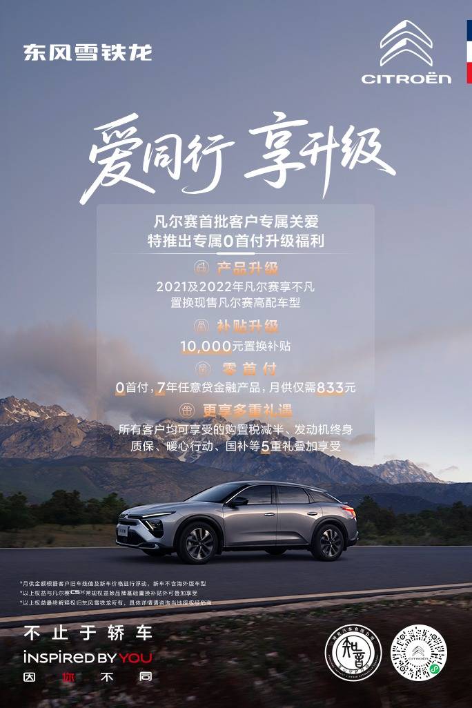 凡爾賽C5 X自上市以來,憑借優(yōu)雅的設(shè)計、舒適的駕乘、全域的安全,收獲了大批用戶的信賴與喜愛。為感恩首批車主的一路相伴,東風雪鐵龍?zhí)貏e針對2021及2022款凡爾賽C5 X首批車主,推出專屬升級方案,以實實在在的福利,降低升級門檻,讓老車主輕松煥新,以更好的狀態(tài)迎接新春。