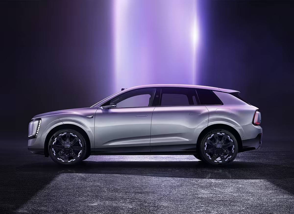 側面來看,新車配有車頂激光雷達,兩側為電子外后視鏡,也可根據申報選項選裝傳統外后視鏡。前翼子板裝有感知攝像頭,與激光雷達配合,駕駛輔助系統將針對中國路況進行優化。輪眉寬大,呈現寬體效果。新車配備22英寸八輻輪圈,根據申報信息,輪圈共有四種樣式可選,并提供21英寸規格。