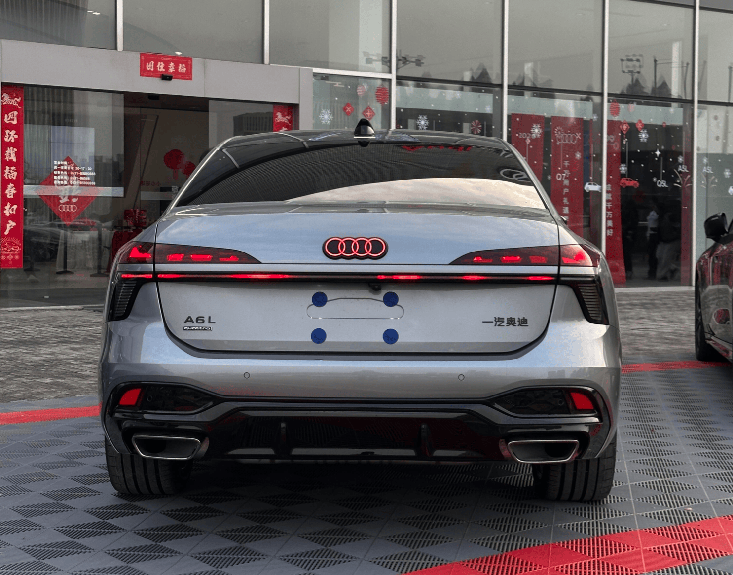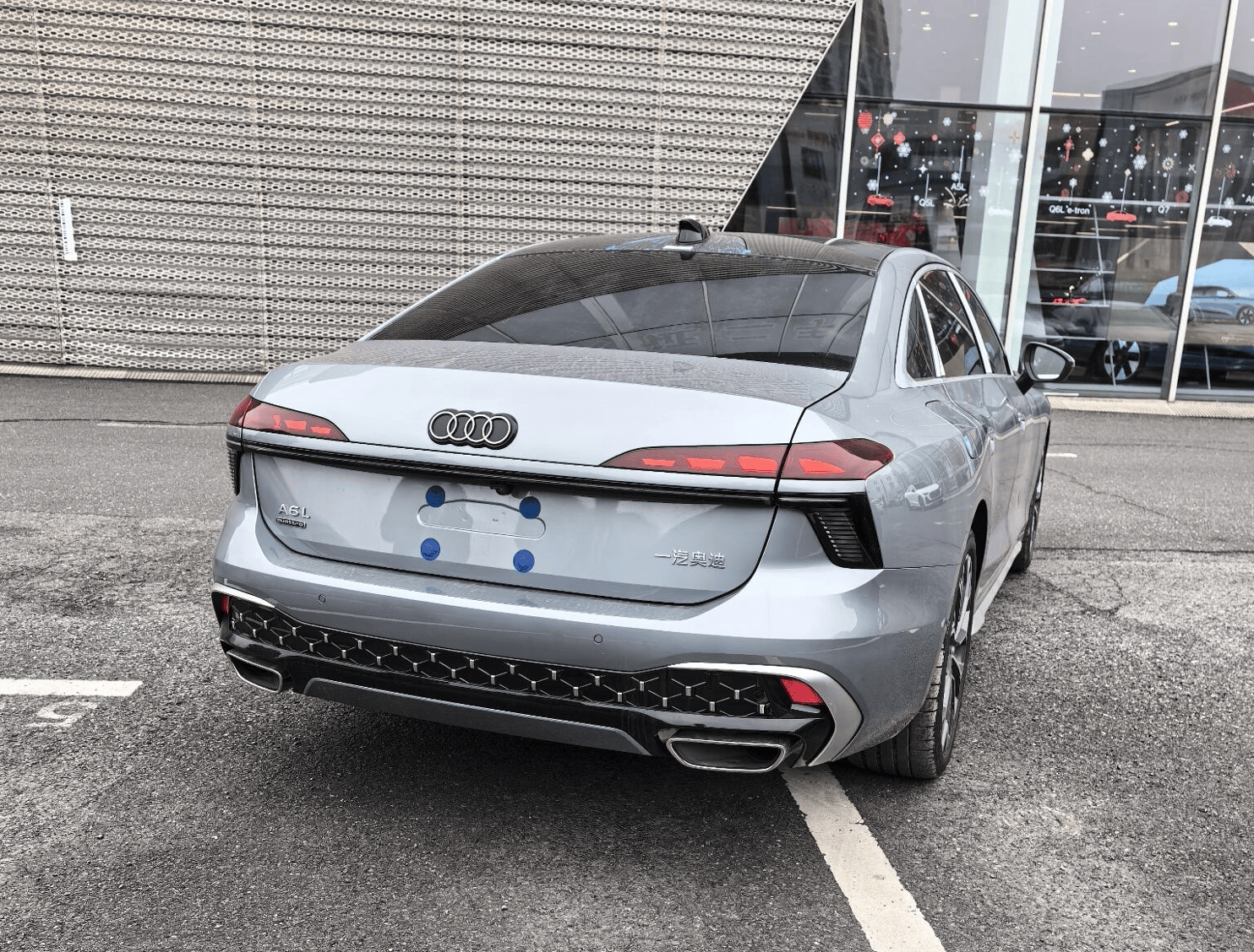厚重且多層次感的尾部造型與整車風格相得益彰,并換裝了雙層“Y”形貫穿式OLED尾燈組,同樣支持個性化燈光簽名效果,與前臉相呼應,加之發光四環logo,兼顧科技感與辨識度。而不同前臉也對應不同后包圍,一種為熏黑擴散器造型+雙出排氣,另一種則加入大量鍍鉻飾件點綴。