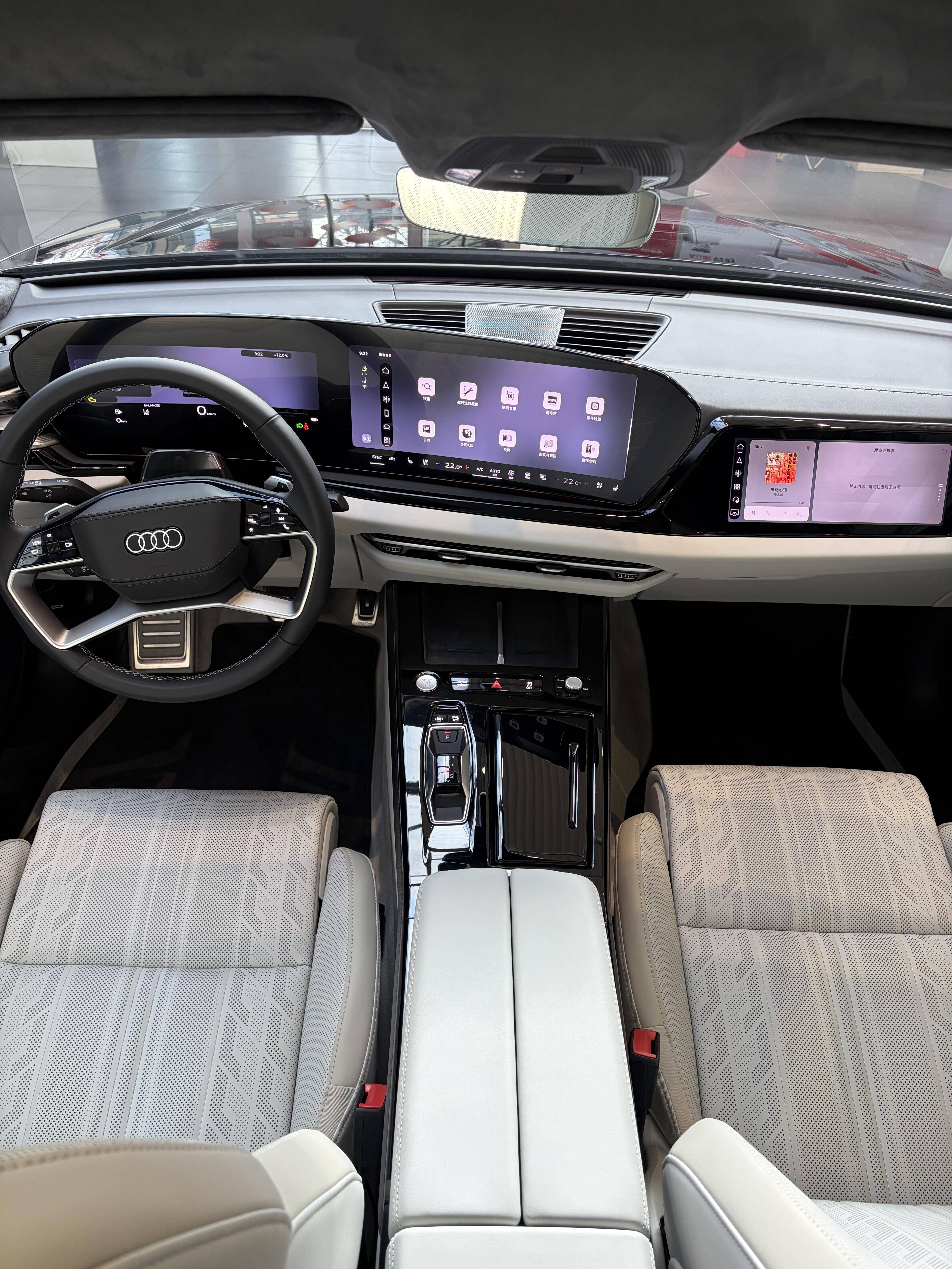 內飾用上了家族最新的三聯屏布局,環抱式的座艙內配備由11.9英寸儀表屏+14.5英寸中控屏組成的曲面雙聯屏,再配合10.9英寸副駕娛樂屏以及W-HUD抬頭顯示,營造出滿滿的科技氣息。而大量皮質包覆,配合麂皮頂棚、鍍鉻/鋼琴烤漆飾件點綴等,又帶來了豪華氣息。此外諸如三/四輻式多功能方向盤、滑塊式換擋機構、雙手機無線快充、流光之境氛圍燈的加持,繼續強調檔次感。