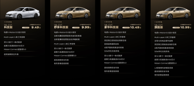 除了最新一代的軒逸,經典軒逸和第十四代軒逸也同期上市,構成了目前行業比較少見的“三代同堂”銷售的局面。其中軒逸經典官方售價7.99萬元,上市限時價6.59萬元,第十四代軒逸官方售價8.49-9.49萬元,上市限時價7.49-8.49萬元。