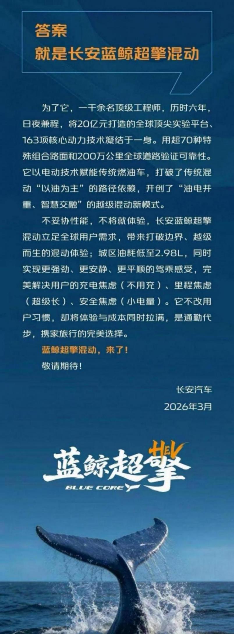 就在今天(3月12日),長安汽車正式發布《長安藍鯨超擎混動》宣言,用一項歷時6年、投入20億元打造的新一代混動技術,給出了自己的答案:真正的回暖,必須靠技術,而不能只靠降價!