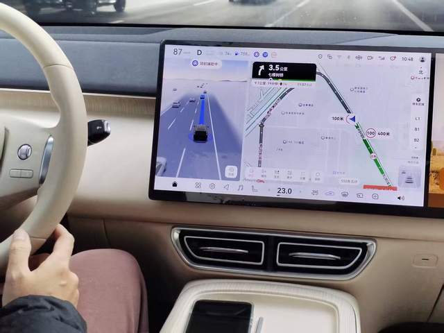設定導航線路,行駛到主干道,開啟城市領航輔助功能。車輛按著定制路線行駛,全程沒有人工干預。交通燈識別精準、起步過程迅速。跟車距離控制適中。轉彎過程很好的做到了禮讓行人。最值得一提的是,它的剎停距離控制的非常好,完美控制車速,完全沒有急停車或者不舒適的停車,整個跟車停止過程更像是一個老手司機的操作。