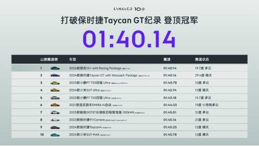 領克首次以“+”之名打造的極致運動座駕——領克10+,聯合領克汽車運動進行賽道級調校,并配備官方性能套件。在山路圈速挑戰中,領克10+ with Racing Package以1分40秒14的成績超越保時捷Taycan GT,奪得亞洲山脊賽道圈速第一,登頂“彎道之王”。這一成就背后,是高性能電驅技術的強力支撐:領克10+搭載最高功率680kW的雙電機四驅系統,最大馬力925匹,零百加速僅需3.2秒,80-120km/h中途加速僅2.1秒。電驅系統大規模應用航天級鎂合金技術,整機凈重僅75kg,比競品輕12kg以上,CLTC工況效率高達93.7%。配合同軸式驅動布局、10ms四驅切換響應以及2ms級G-TCS智能防滑控制,車輛在動力釋放、彎道響應和穩定操控上均達到同級領先水平。
