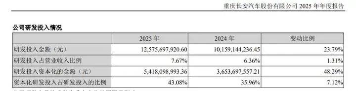 研發投入層面,財報顯示2025年長安汽車研發投入為125.76億元,同比增長23.8%,研發強度位居行業前列。