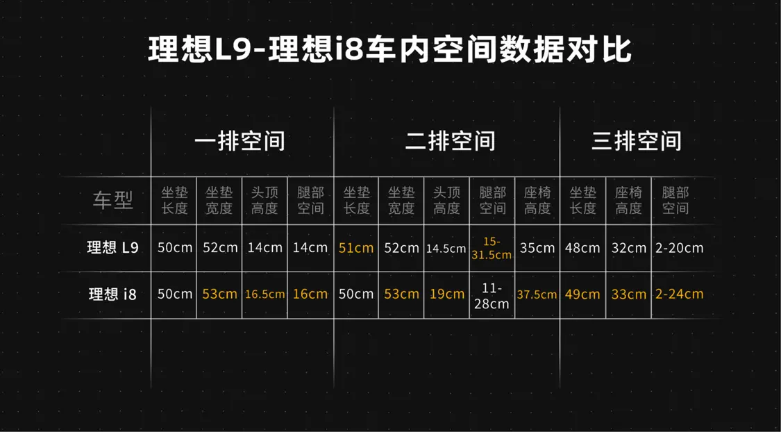 理想i8定位為中大型純電SUV,采用2+2+2六座布局,車身尺寸為 5085×1960×1740mm,軸距達 3050mm。根據《鳳凰車研所》實測數據,理想i8在外尺寸略小的前提下,車內實際的乘坐空間不遜色于理想L9。