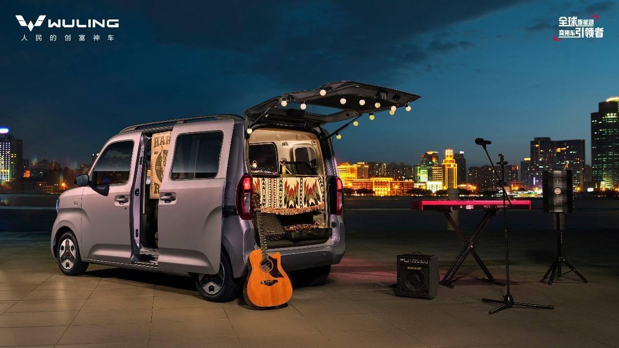 并且 全車預留 20 處 M6 標準螺紋安裝孔,提供豐富的拓展儲物空間;此外,五菱之光 EV 同級創新搭載對外放電功能,可以滿足各類擺攤需求。