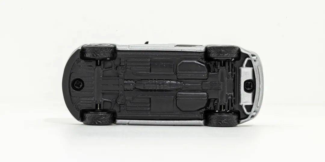 模型的漆面質(zhì)感不錯,銀色金屬漆顆粒比較均勻,車頂平整,也沒有添加像魚鰭天線這樣的細(xì)節(jié);模型的內(nèi)飾也是黑色塑料原色,基本也沒啥細(xì)節(jié)可言,而前雨刮器也是浮雕在前擋風(fēng)上的。