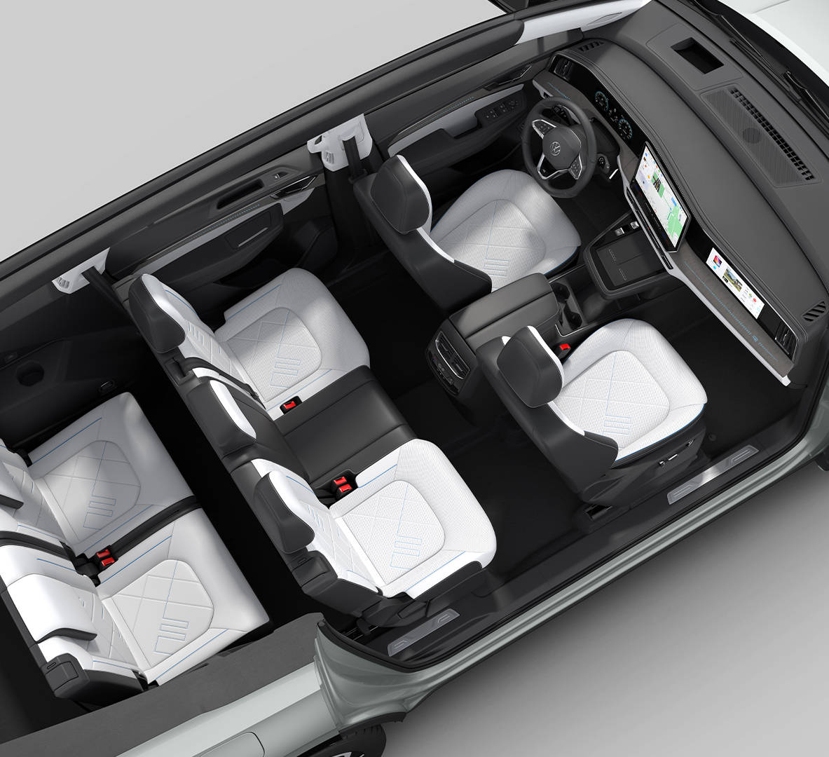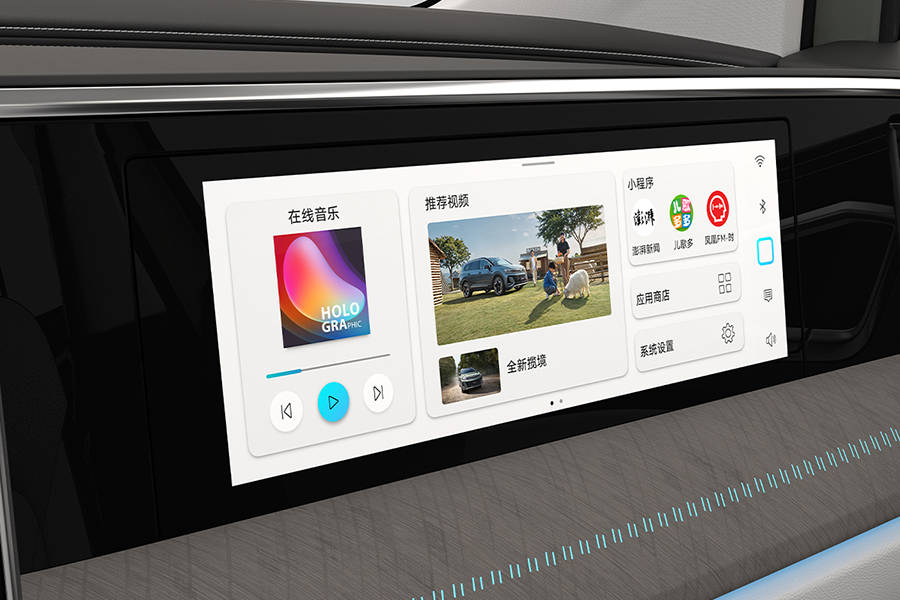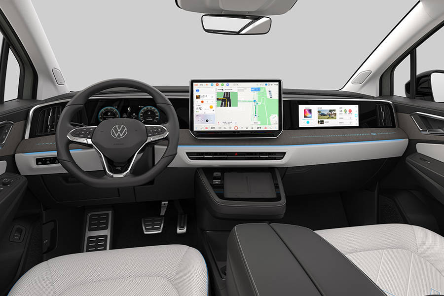 新車內(nèi)飾采用環(huán)抱式設(shè)計(jì),大眾家族最新的設(shè)計(jì)風(fēng)格,主駕、中控、副駕三屏組成,并輔助抬頭顯示系統(tǒng),懸浮式中控屏的尺寸更大,車機(jī)采用高通驍龍8155芯片,車機(jī)系統(tǒng)、導(dǎo)航、娛樂、語音全面升級(jí)。中控臺(tái)下方增加無線充電面板,改用懷擋。同時(shí),新車采用6座/7座布局,后備廂空間350L。