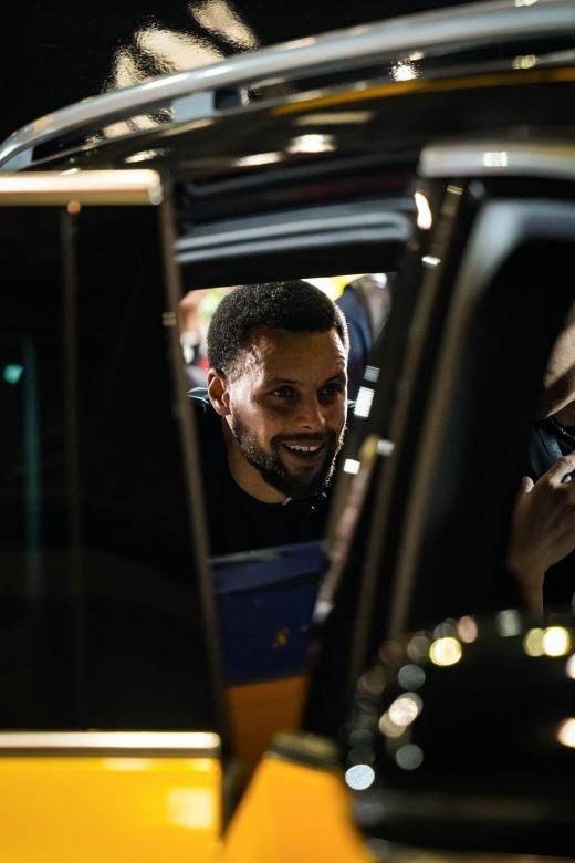 與此同時,粉絲們在社交平臺發起#三千公里為庫里#話題,實時記錄這趟追星之旅,引發了球迷和車迷的關注與熱議。8月18日,庫里如約來到戰車旁,此時車內32英寸升降式投影正播放各地粉絲的祝福畫面,這份承載著千里心意的影像,為這場雙向奔赴帶來了滿滿的驚喜。