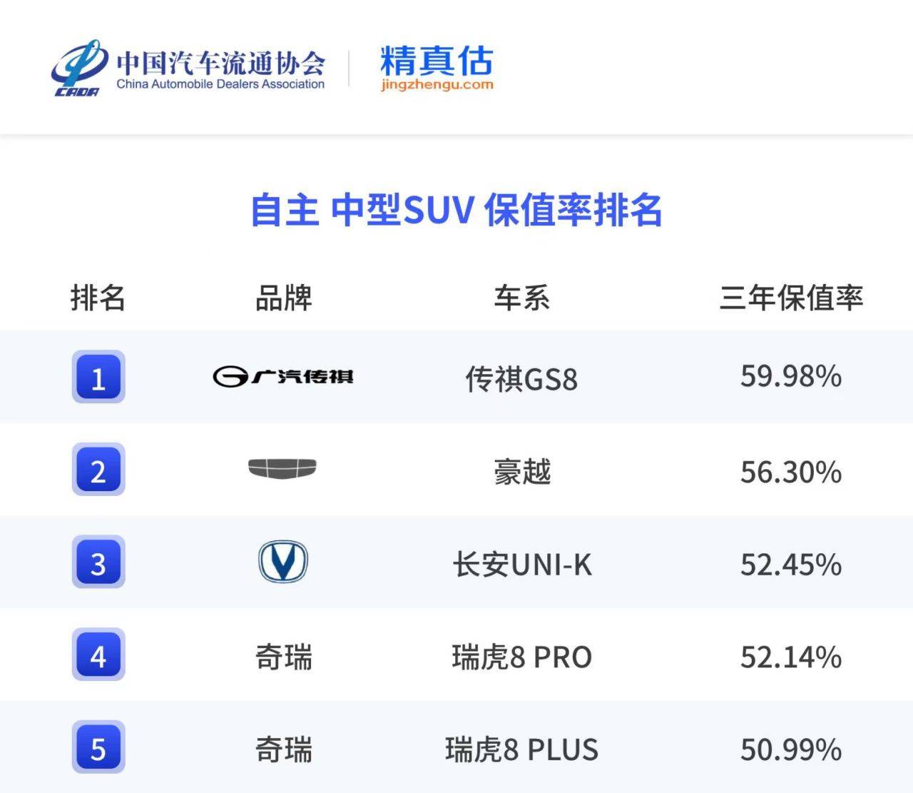 在品牌層面,廣汽傳祺以57.29%的三年保值率蟬聯自主品牌保值率榜首。