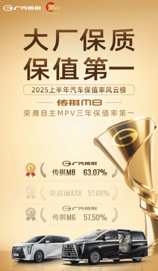 7月初,中國汽車流通協會聯合精真估發布的《2025年度上半年中國汽車保值率報告》顯示,廣汽傳祺以57.29%的三年保值率蟬聯自主品牌榜首,旗下傳祺M8、傳祺E8、傳祺GS8也分別在細分市場霸榜。高保值率不僅意味著車輛在二手市場能保持較高價值,降低車主換車成本,更是品牌綜合實力、產品質量與市場認可度的有力證明。