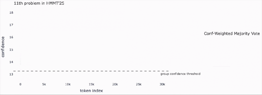 以DeepConf在HMMT 25(哈佛–麻省理工數學競賽)的第11道題目上的推理過程為例。