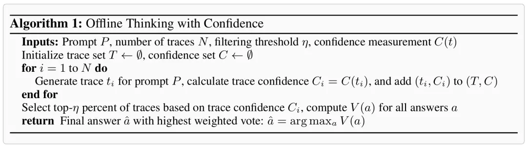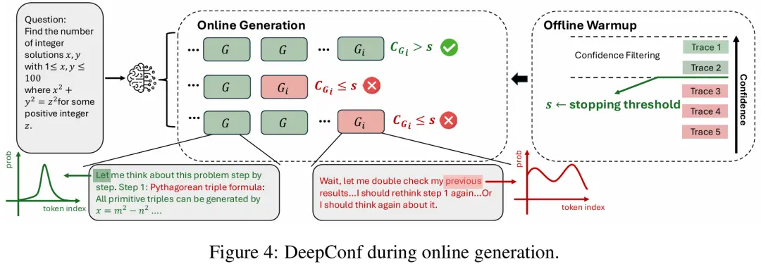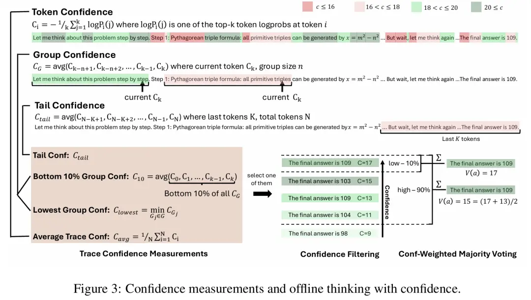在線思考:在模型一步步生成推理的過程中,就實時參考置信度。如果發現某條思路不靠譜,可以及時停掉,避免浪費算力。這樣能邊走邊篩選,提升效率甚至精度。