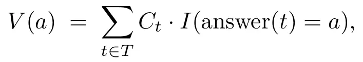 第二步:投票,在剩下的推理鏈里,不是簡單數票,而是按照置信度加權投票。