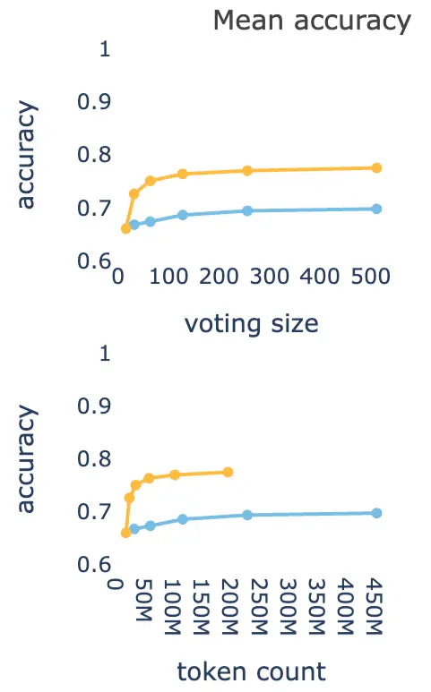 下圖橫軸是token數量(推理所需的計算成本),黃色曲線在準確率保持較高的同時,token消耗明顯更少。