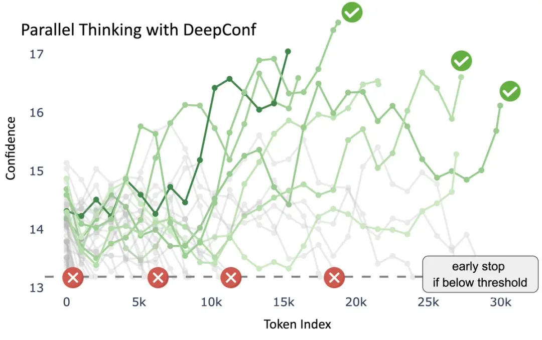 DeepConf實時監控「局部置信度」,在錯誤的推理路徑消耗數千個token之前及時終止。